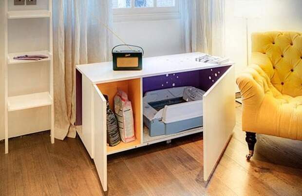 Спрячьте туалет вашей кошки в специальной кабине.