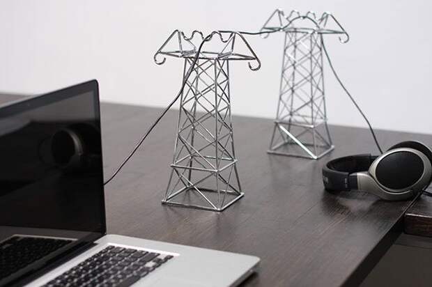 Придайте смысла беспорядочно валяющимся проводам, повесив их на изумительные маленькие башни электропередач.