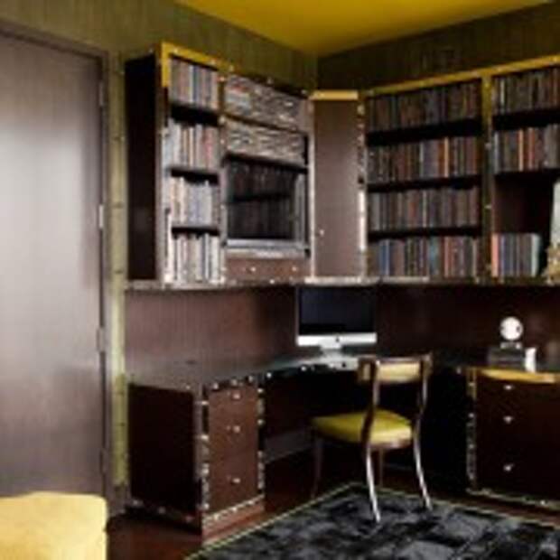 Если под кабинет удалось выделить большую комнату, то огромный угловой стол здесь будет как нельзя кстати. В таком случае совсем не обязательно выбирать компактную модель, здесь очень даже уместным будет большая и важная громоздкая модель углового стола, за которой вы при любом занятии будете чувствовать себя комфортно и уютно. К такому столу идеально подойдут стеллажи с многочисленными полками для обустройства домашней библиотеки.