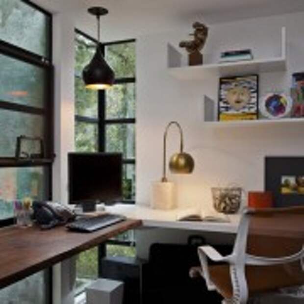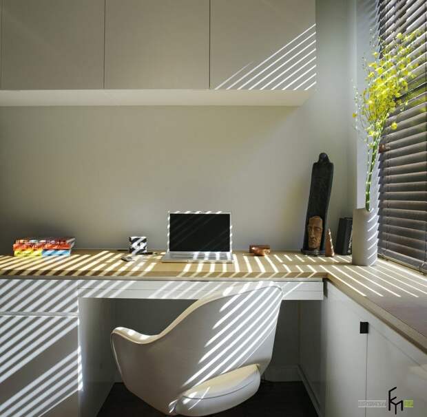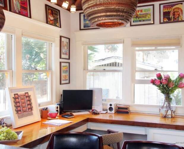 Просто шикарно, если одну из комнат в квартире можно оформить как кабинет. Причем это может быть не совсем комната, а, к примеру, утепленный балкон. Именно здесь самое место угловому столу, за которым можно будет в спокойной обстановке посидеть за компьютером или заняться любимым хобби.